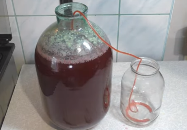 Если по прошествии полутора месяцев вино продолжает бродить, необходимо аккуратно слить его с осадка через трубку, перелить в другую емкость (или в такую же, но промытую) и дать бродить.