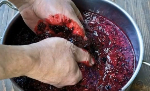 Самый главный момент! Не мойте ягоды перед тем, как их размять. На поверхности каждой грозди есть так называемые дикие дрожжи, благодаря которым происходит брожение.