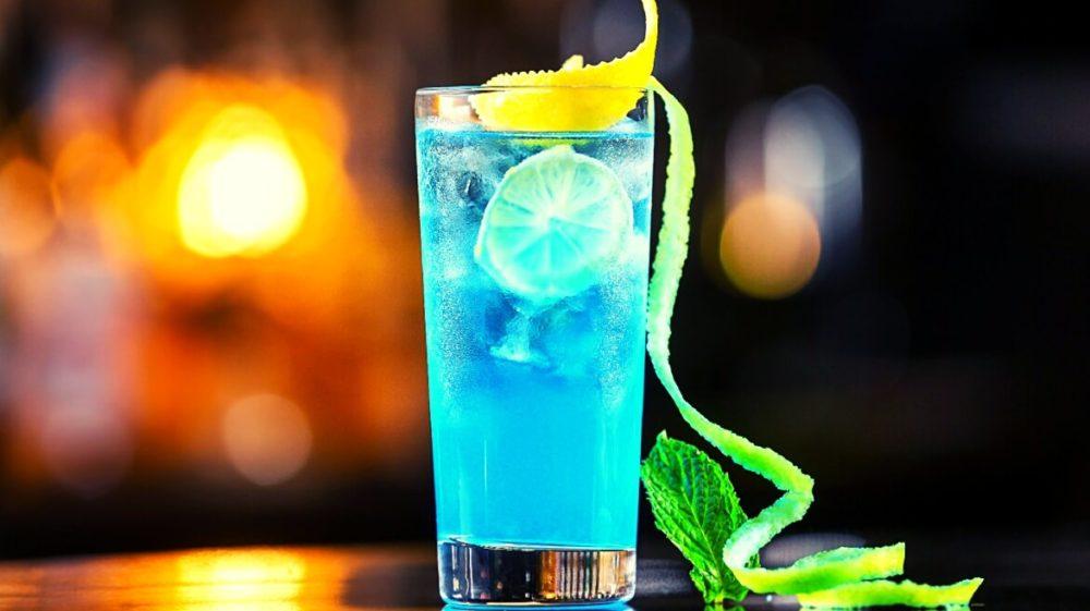 - Аккуратно налейте ликер Blue Curaçao;