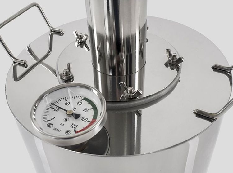 Большинство самогонных аппаратов имеют термометр, который показывает температуру в перегонном кубе. В некоторых случаях ставят даже электронный, в результате чего следить за нагревом и остыванием жидкости очень легко.