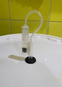 — с включением медицинского шприца и капельницы в гидрозатвор для вина;