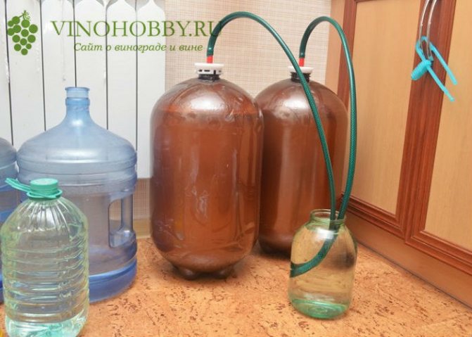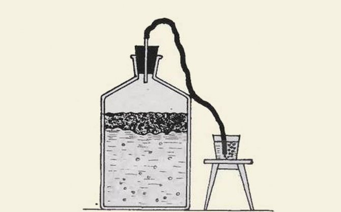 При правильно установленной и работающей гидрозатворе легко определить окончание процесса ферментации. Через 1-2 дня после того, как в банке с водой не останется пузырьков газа, можно приступать к сливу готового вина с осадка.