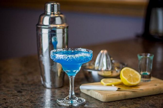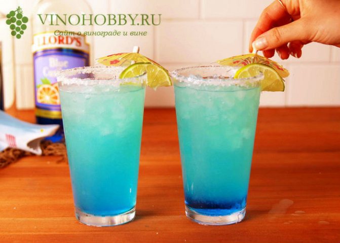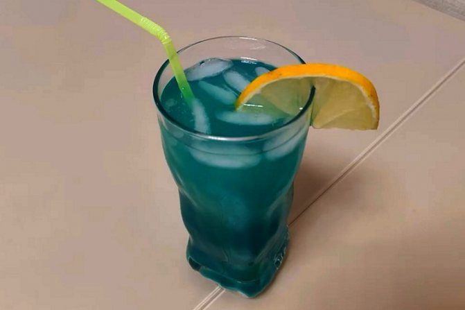 • ликер из голубых цитрусовых — обычно берут Blue Curacao, но его можно заменить менее известными аналогами, например, Bloos, а в безалкогольном варианте используется сироп, главное, чтобы выбранный ингредиент имел желаемый оттенок;