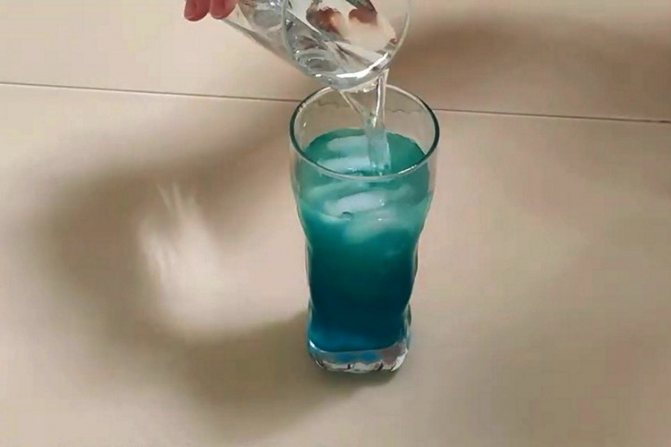 3. Вылейте в стакан заранее приготовленную спиртово-содовую смесь.