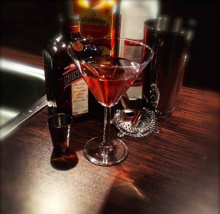 «Космополитичным» девушкам он нравится тем, что напиток имеет нежный вкус и очень красивый оттенок, прекрасно себя чувствует благодаря добавлению клюквы.
