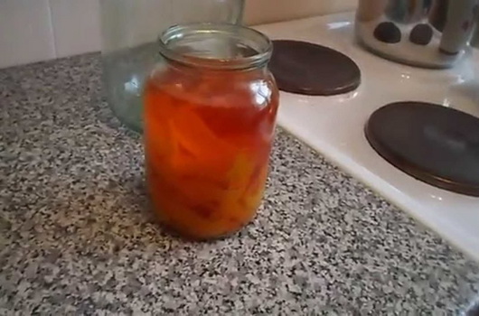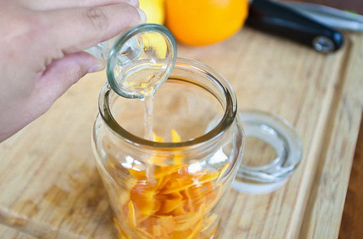 - Выложить цедру в банку, залить спиртом. Хранить в закрытой банке 3 дня.