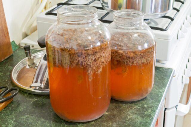 Простой рецепт рассчитан на трехлитровую банку, приготовленную на любом крепком спирте — самогоне, водке или спирте. Его главное отличие в том, что не нужно долго ждать окончания процесса брожения.