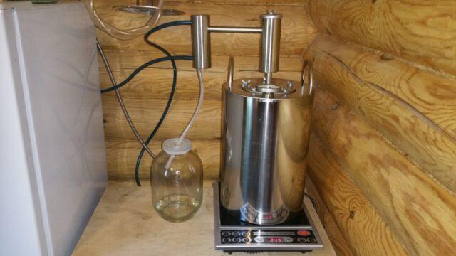- Брожение должно проходить при температуре 20-25 ° C. Время брожения зависит от силы дрожжей и температуры окружающей среды и составляет от 20 до 45 дней. Вы можете контролировать окончание процесса брожения по отсутствию пузырьков в гидрозатворе.
