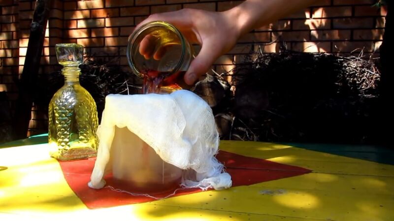 - На следующий день профильтровать через салфетку, можно даже несколько раз, для получения кристальной прозрачности.