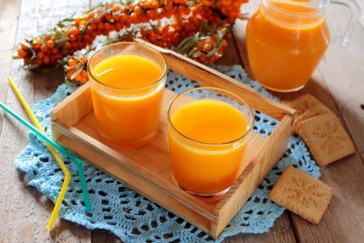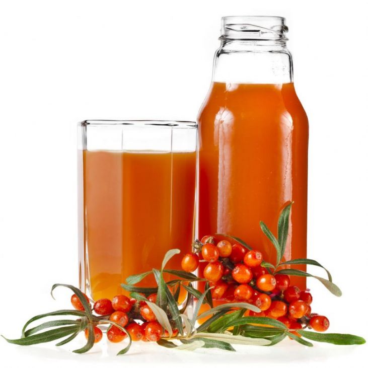 - Оставшийся сок облепихи необходимо смешать с водой в соотношении 1: 1. При этом температура смеси должна быть 24… 25 ° С.