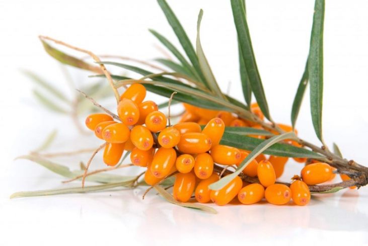 Фрукты — самая яркая и полезная часть растения. Цвет ягод ярко-оранжевый, форма овальная, размер небольшой. Их панцирь покрыт каплями воска. Сок золотистого цвета, с кислинкой. В центре ягоды находится большое продолговатое семя, наполненное маслом. Облепиху можно встретить во всех странах Европы, так как она очень неприхотлива к почвенно-климатическим условиям.