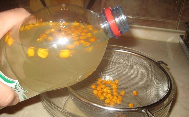 - Слейте настой облепихи отдельно и утилизируйте по своему усмотрению.