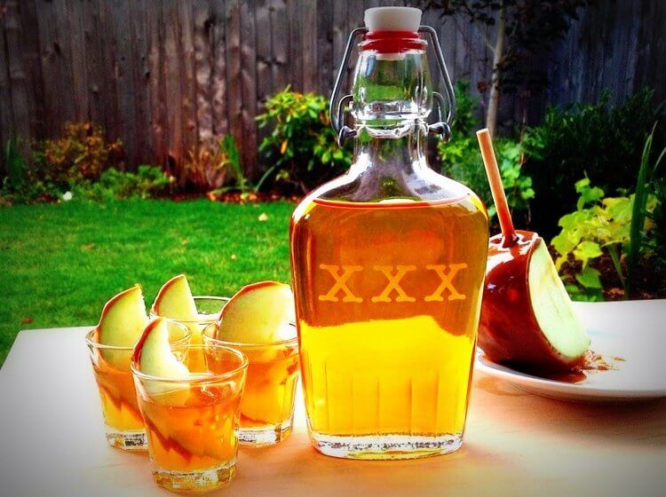 Для этого нужно взять 1 килограмм яблок и 1 литр водки. Подготовленные фрукты сложите в емкость и залейте спиртом. Добавьте щепотку корицы и 3 грамма ванилина. Этот напиток следует настоять 14 дней, а затем процедить. У этого напитка будет около 30 градусов крепости.