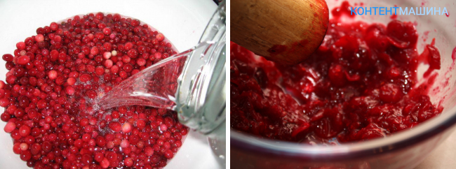 - Ягоду заливают кипятком на четверть часа — в это время кожица начнет лопаться, а плоды будут интенсивно выделять свой сок.