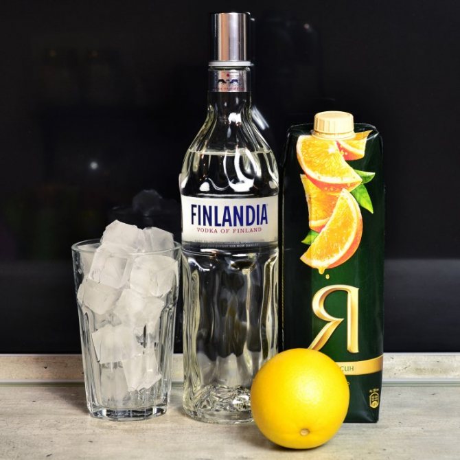 Нужен хороший, неразбавленный апельсиновый сок, в идеале свежая, качественная водка. Американцы уверены (мол, не без помощи некоего Джона Мартина), что водка Smirnoff будет лучшим вариантом. Для нас главное — качество, без сивушного духа и сильного вкуса. Также стоит иметь под рукой немного льда — он сделает именно то, что вам нужно. В подсчете: