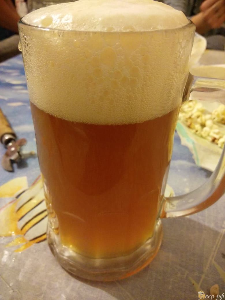 В моей чашке пенился напиток насыщенного янтарного цвета, немного непонятный. С очень мощной пеной из пузырьков, которая упорно держится на верхушке напитка. Можно было налить все 0,5 литра, всего один правильный напиток.