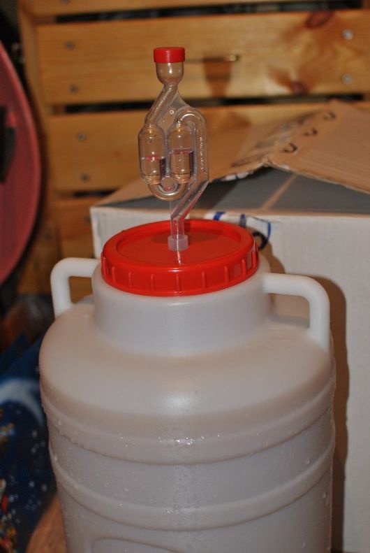 - Подогреваем воду до 30 градусов и выливаем в бродильную ёмкость (важно, чтобы одна четвертая ёмкости была свободна под выделения пены).