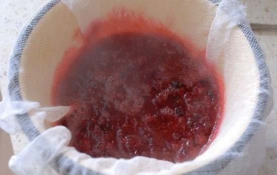На 11 день процеживаем через самодельный или покупной фильтр, перетираем сливы через сито и отжимаем сок из жмыха. Сливовую настойку разливаем в стеклянные бутылки.