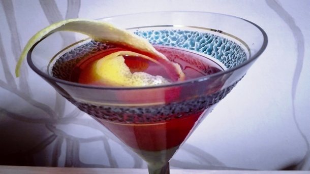 Смешайте в стакане для смешивания с большим количеством колотого льда. Процедить в коктейльный бокал. Украсить завитком лимонной цедры.
