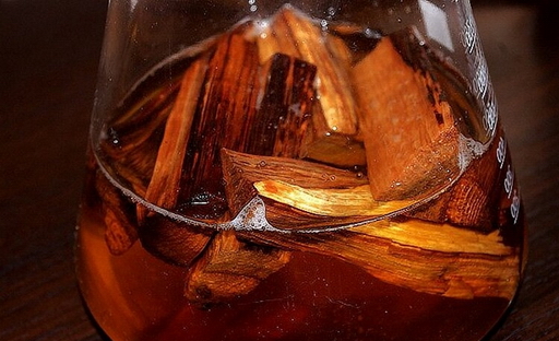Более удачная имитация выдержки дистиллята в бочках, чем первый метод, но требует тщательной предварительной подготовки и длительного настаивания. Сначала древесину нужно освободить от излишка дубильных веществ, портящих вкус. Это делается путем вымачивания с последующей температурной обработкой.