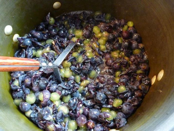- Очищаем виноград от гроздьев, листочков и незрелых ягод.