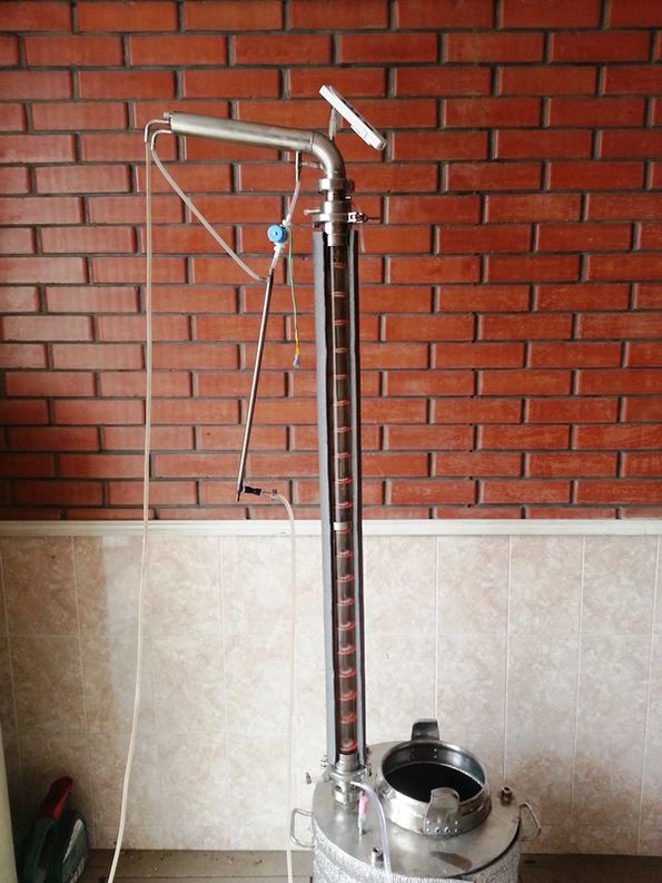 Очень далек от ректификационной колонны как по качеству самогона, так и по его крепости. Но уже можно оборудовать насадками Панченкова, что является хорошим плюсом. Дефлегматора пока ещё нет.