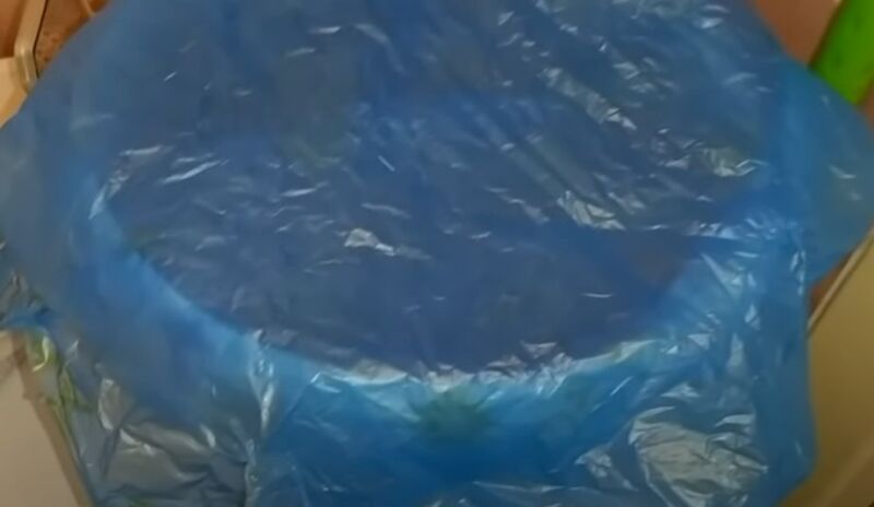 5. Закройте шею целлофановой перчаткой, проколите сначала один или два пальца. Если в данный момент его нет в наличии, мы воспользуемся полиэтиленовым пакетом и обязательно проделаем отверстие в его верхней части с помощью иглы, чтобы выходили газы. Позже замените перчаткой.