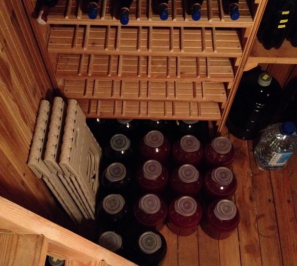Главное условие хранения вина — темное и прохладное помещение. Напиток не должен контактировать с металлом и воздухом. Даже на промежуточных этапах приготовления сусло не должно быть в контейнерах из меди, железа или цинка. Алюминиевые емкости подходят только для заливки — хранить краситель внутри нельзя.