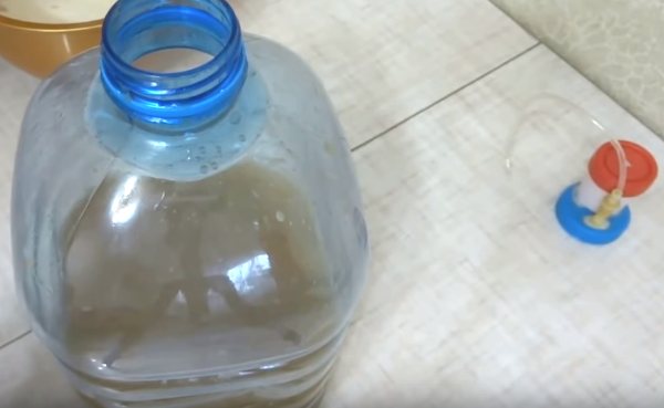 - Наполните емкость очищенной водой, чтобы еще оставалось место для брожения и не поднималась пена.